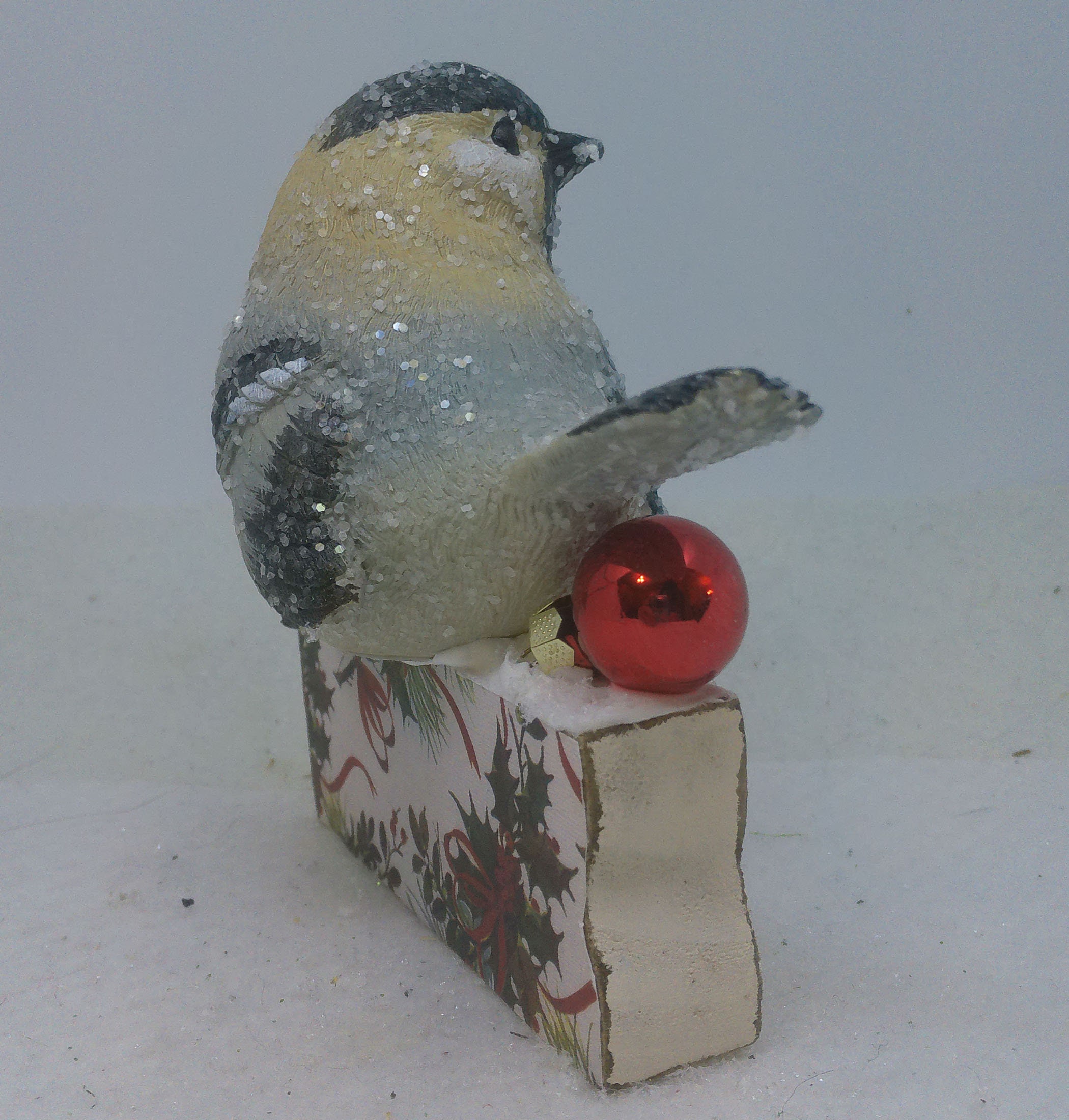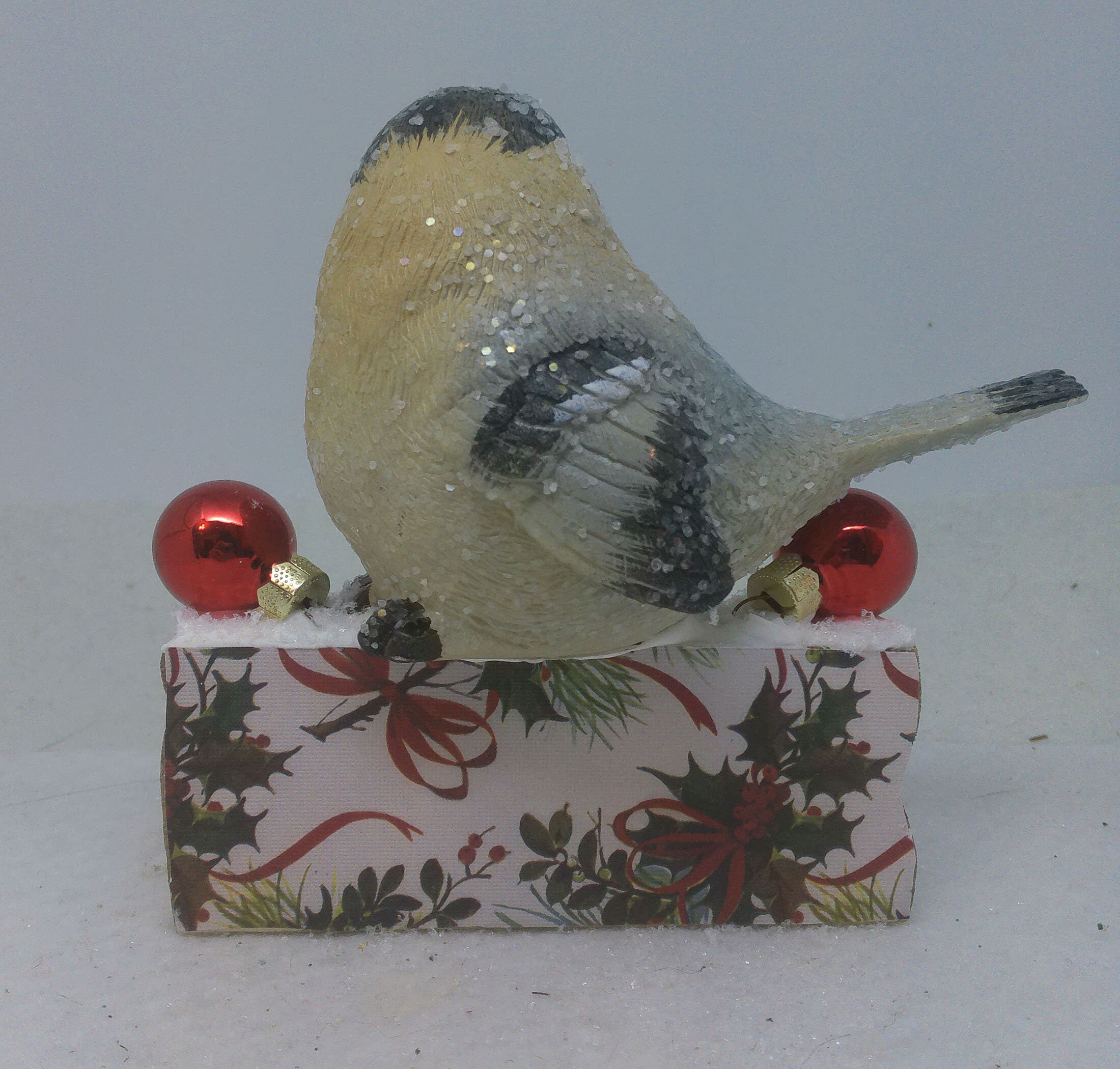 One of a kind, handcrafted Christmas Decor titled: Songbird Joy.