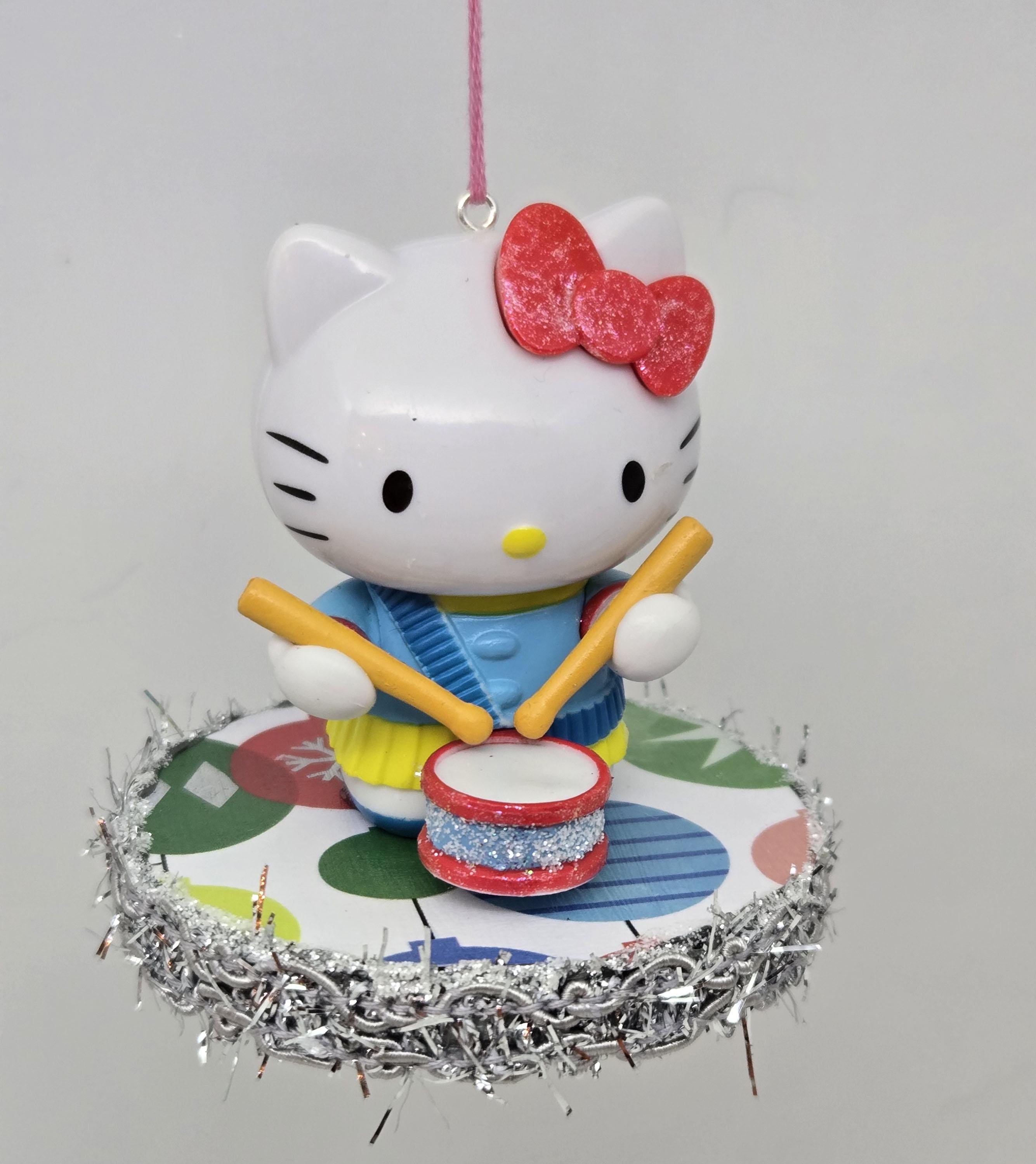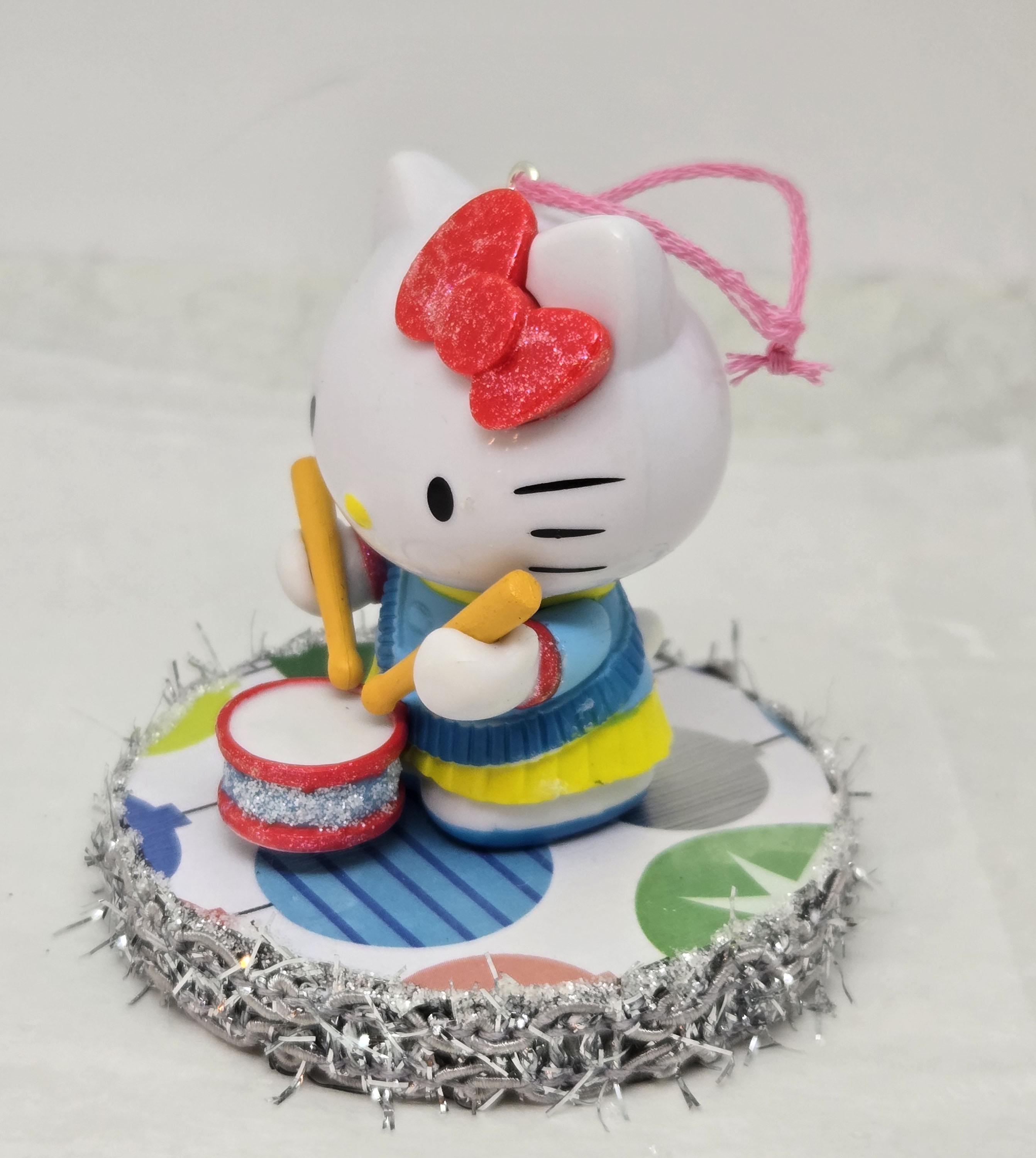 One of a kind, handcrafted Hello Kitty Christmas Ornament titled: Little Drummer Kitty.