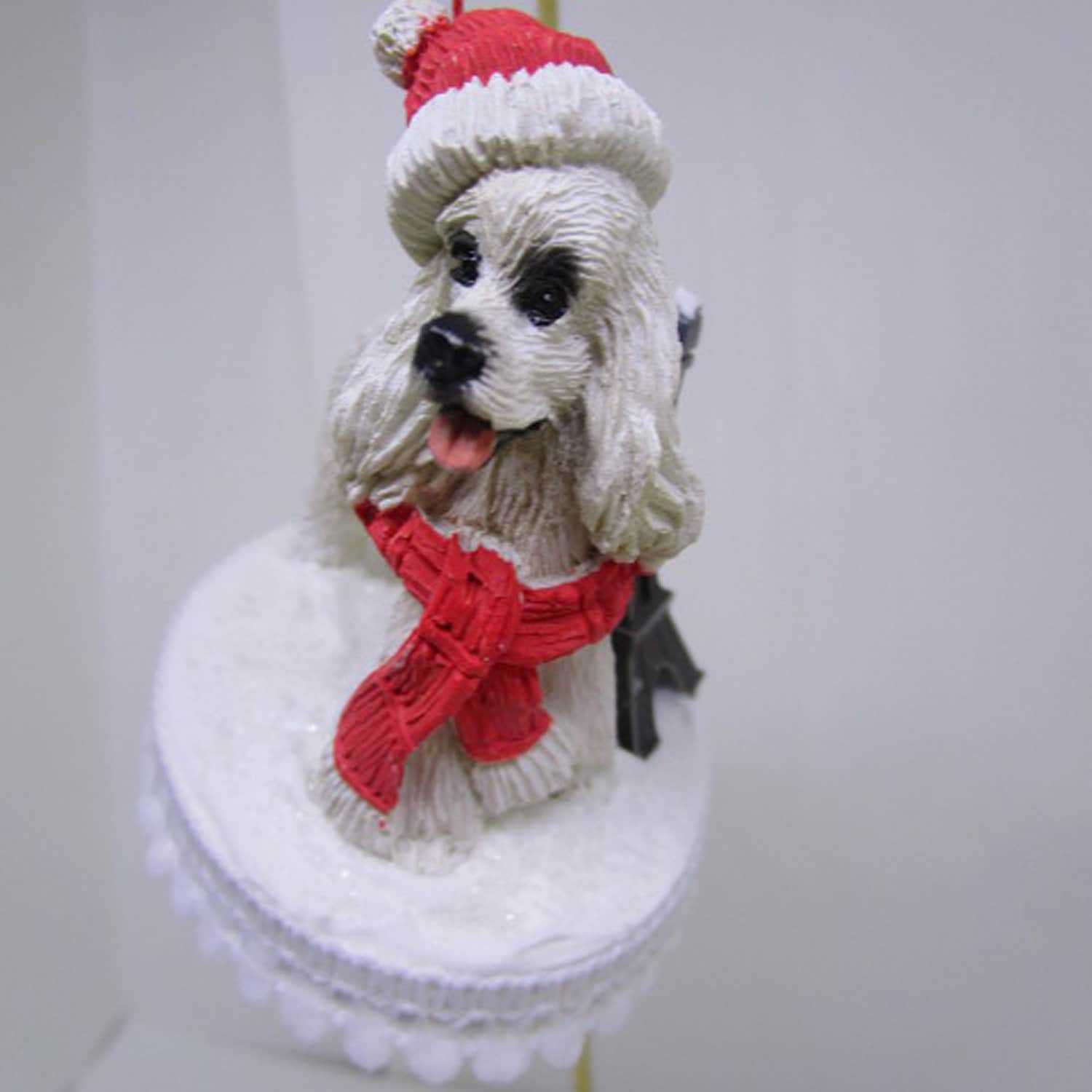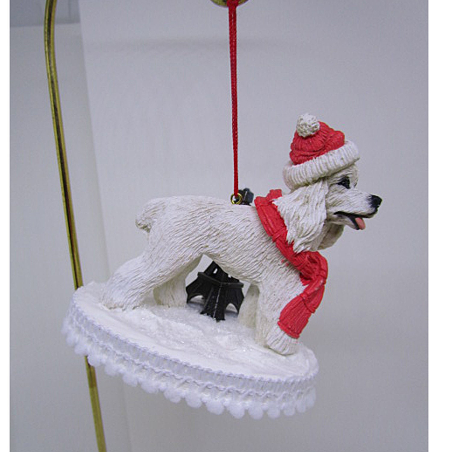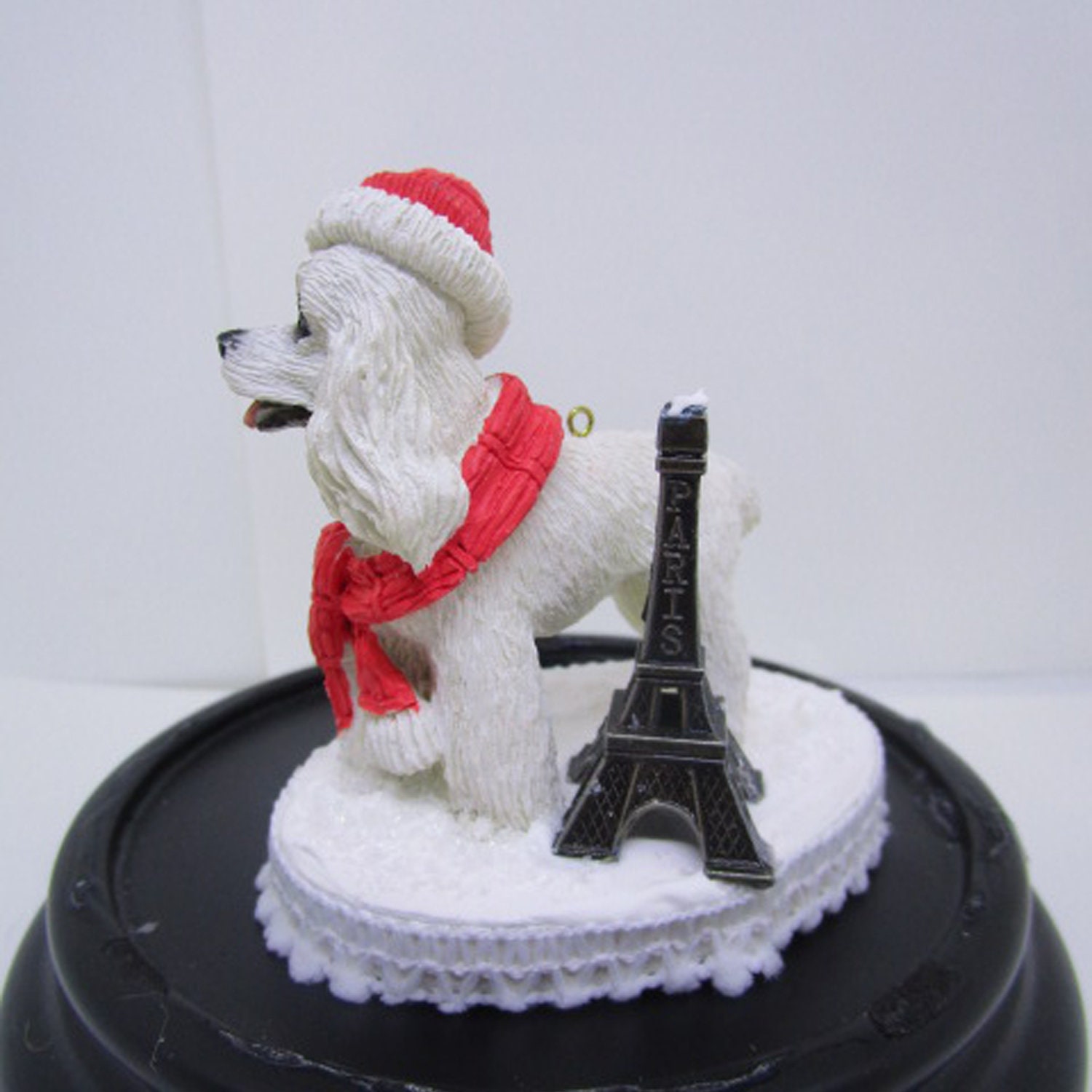 One-of-a-Kind, handcrafted White Standard Poodle Christmas Ornament titled: Gay Paree