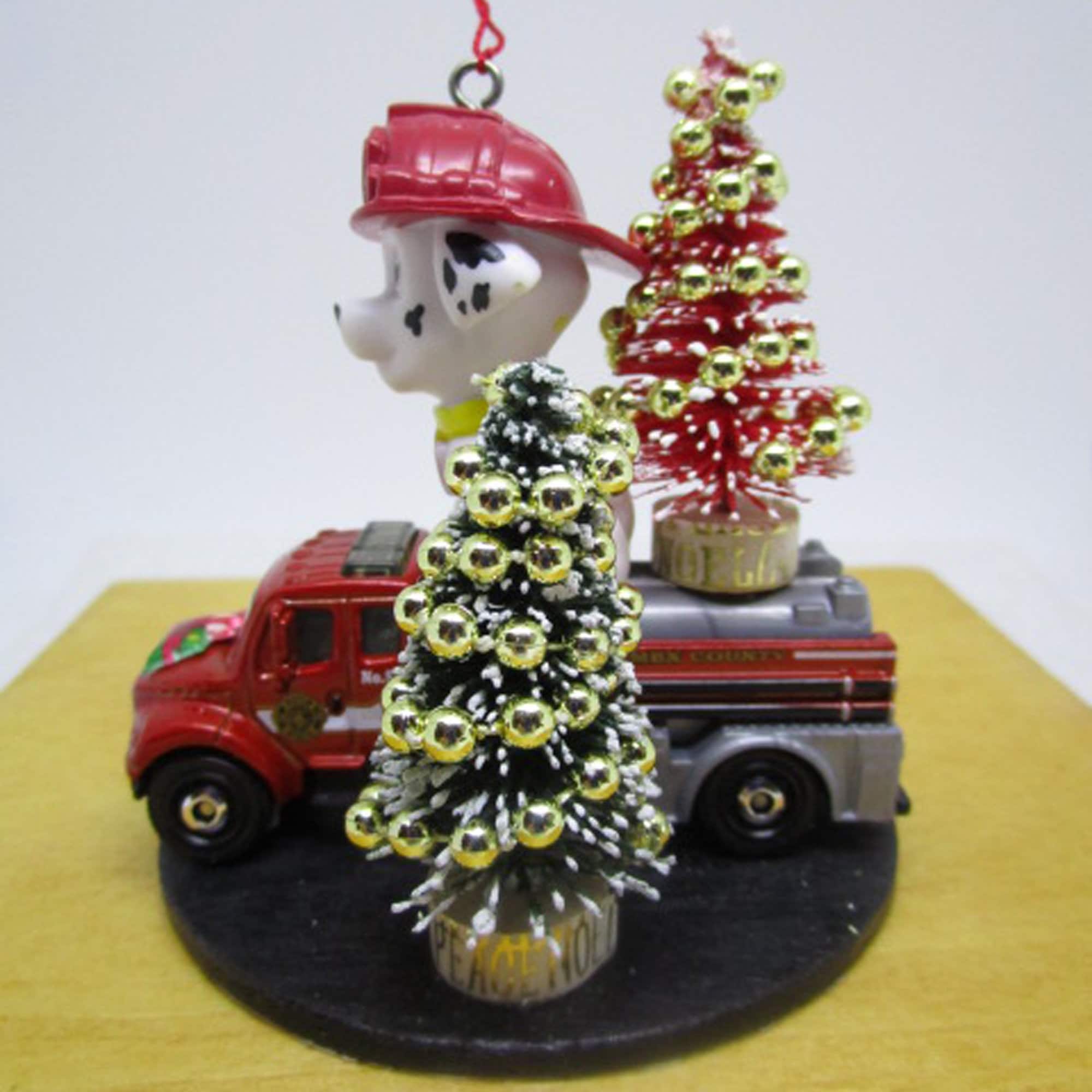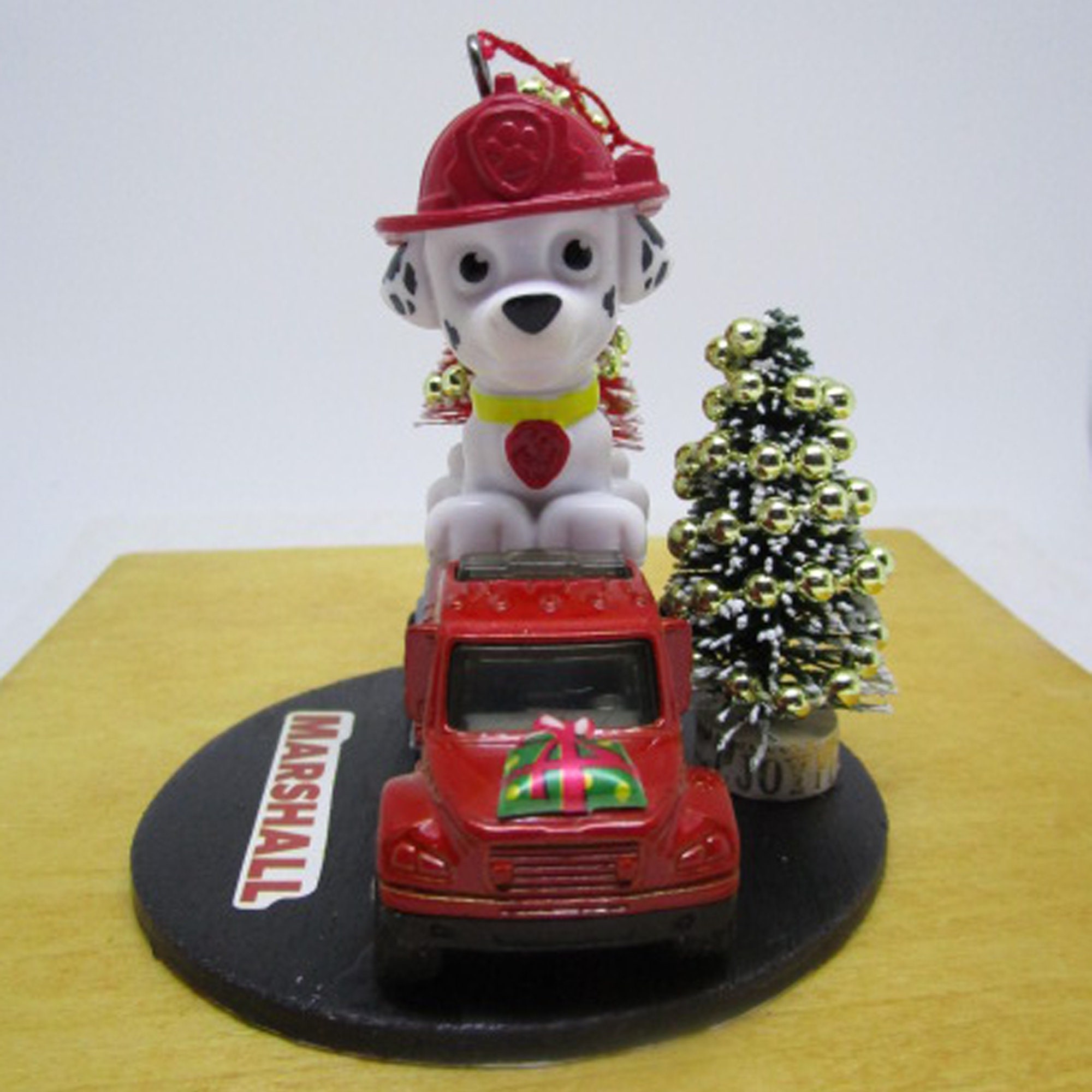 One of a kind, hand crafted Paw Patrol Marshall Christmas Ornament. Title: Marshall Rides in Adventure Bay's Christmas Parade.